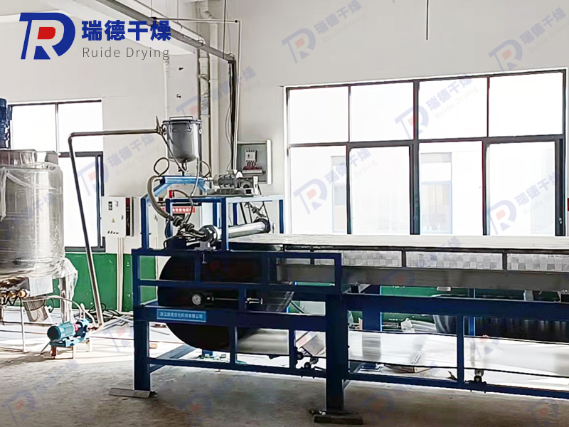 The molten material in the material tank is pumped out by the material pump and sent to the fabric feeder through a filter. The outer drum rotates around the stator. When the pointed mouth on the outer drum passes through the bottom of the stator, a certain amount of material will be sprayed out through the pointed hole on the outer drum and drip onto the upper surface of the cooling steel strip below. After being transported by the steel strip and cooled by the cooling water, it is cooled into solid particles. The solidified particles are scraped off by the scraper at the tail of the steel strip cooling machine and transported to the packaging machine by the conveyor belt.