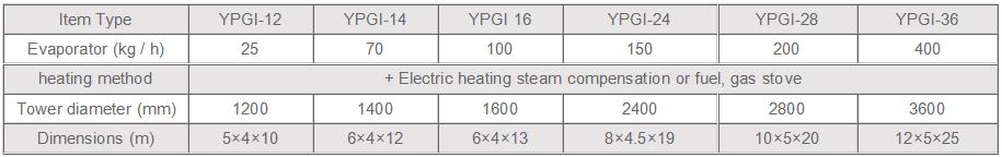 1.The amount of water evaporation is related to the characteristics of the material and the evaporation temperature. In this table, the calculation is based on the inlet air temperature of 150-160 ℃.
