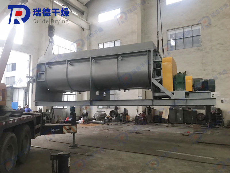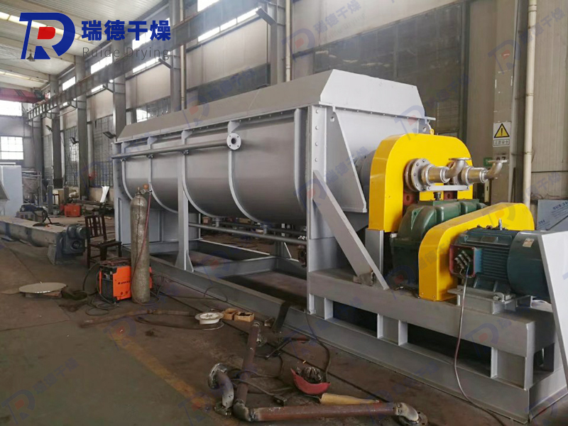 Wedge shaped hollow blades are densely arranged on the hollow shaft, and the heat medium flows through the blades through the hollow shaft. The heat transfer area within a unit effective volume is large, and the temperature of the heat medium ranges from -40 ℃ to 320 ℃. It can be steam or liquid, such as hot water, thermal oil, etc. Indirect conduction heating does not carry away heat with air, and the heat is used to heat the material. The heat loss is only the heat dissipation to the environment through the insulation layer of the device body. The wedge-shaped blade heat transfer surface has self-cleaning function. The relative motion between the material particles and the wedge-shaped surface produces a scrubbing effect, which can wash away the attached material on the wedge-shaped surface and maintain a clean heat transfer surface during operation. The shell of the blade dryer is Ω - shaped, and generally two to four hollow mixing shafts are arranged inside the shell. The shell has a sealed end cover and an upper cover to prevent material dust leakage and fully exert its function. The heat transfer medium flows through the shell jacket and hollow stirring shaft through the rotating joint. The hollow stirring shaft has different internal structures according to the type of heat medium to ensure the best heat transfer effect.