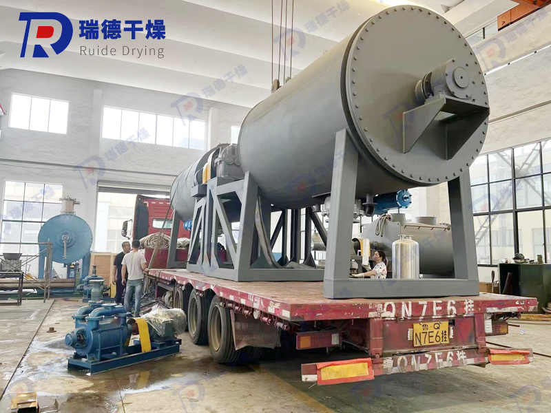 This machine is a novel horizontal intermittent vacuum drying equipment. Wet materials are evaporated through conduction, and a scraper stirrer is equipped to continuously remove the materials on the hot surface and move them inside the container to form a circulating flow. After the water evaporates, it is pumped out by a vacuum pump.