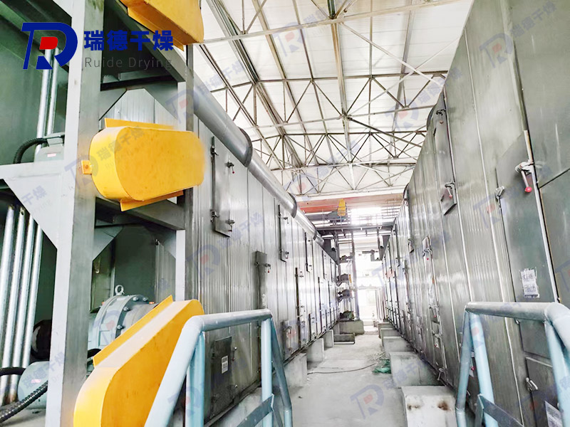(1) Single-stage belt dryer: the material to be dried is evenly distributed to the conveyor belt from the feeding end through the feeding device. The conveyor belt is usually made of perforated stainless steel sheet, driven by a motor through a gearbox, which can be adjusted for speed. The body of the drying chassis is usually divided into several units to independently control operating parameters and optimize operation. There is an isolation section between the drying sections, in which no drying medium circulates.