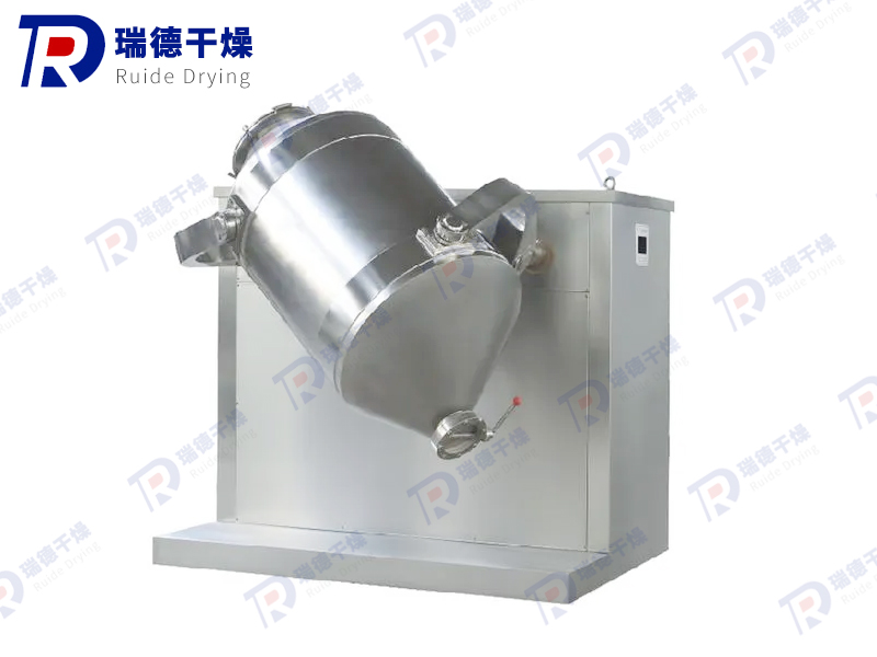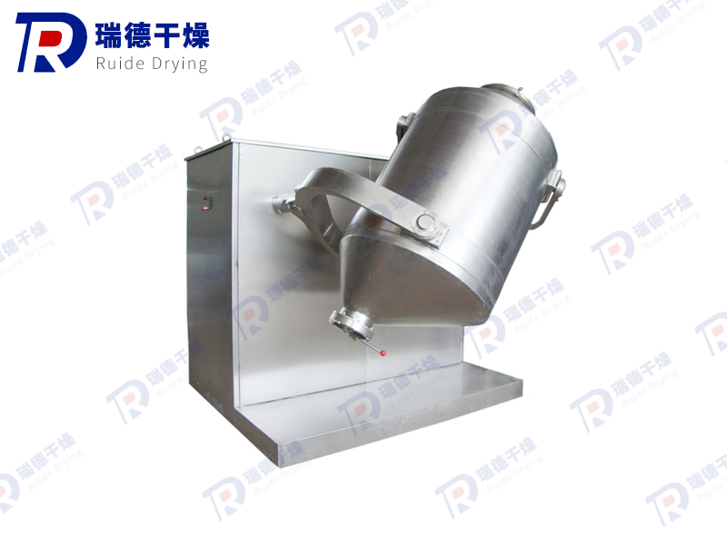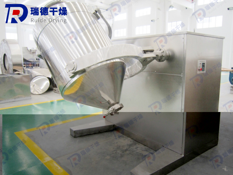 The 3D motion mixer consists of a machine base, transmission system, electrical control system, multi-directional motion mechanism, mixing bucket and other components. The mixing bucket that comes into direct contact with the material is made of stainless steel material, and the inner and outer walls of the bucket are polished.