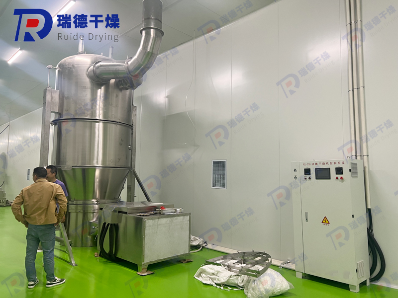 FL series boiling pelletizing machine is also known as "one-step pelletizing machine", the use of boiling pelletizing method is the result of the comprehensive application of spray technology and fluidization technology, the use of high-speed hot air flow to fluidize powder, and then the bonding effect of atomized adhesive, so that the solid powder bridge each other, agglomeration, and gradually form particles. This machine is based on the traditional double column air cap type granulator, which is a newly developed single column airbag sealed granulator, suitable for the granulator drying operation in pharmaceutical, chemical, food and other industries.